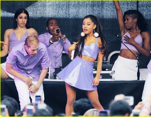 Ariana Grande sports a beautiful purple 2 piece for her concert which is carried out at Macy’s Herald Square on September 16th Wednesday in NYC.