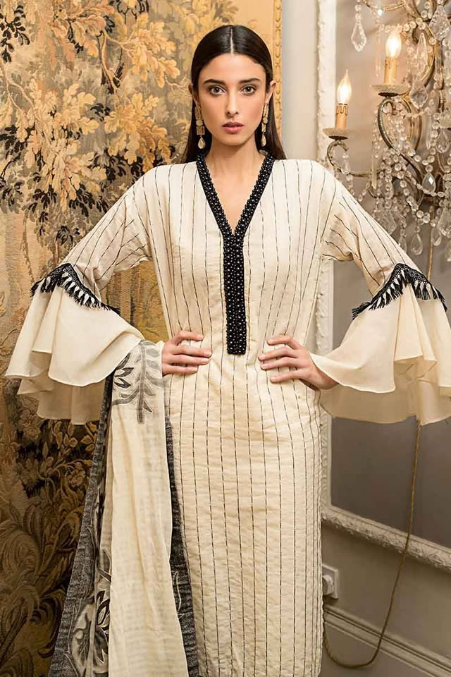 You can watch the matchless elegance and glamour in the Luxury collection 2019 provided by Gul Ahmed, which are offered in A line shirts, pants, skirts, long shirts, frocks, churidar pajamas, trousers and tights. This collection has shown the feminine appeal in women with the modern designs and patterns. You can also find the mixture of contrasting colors of orange, yellow, blue and black.