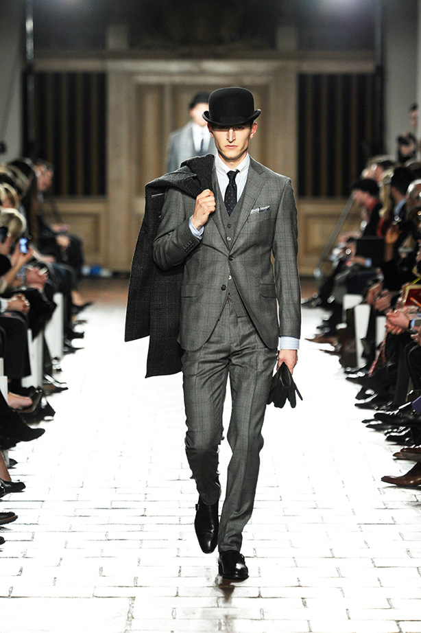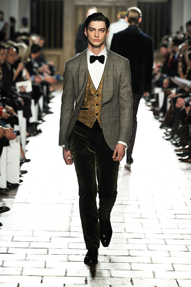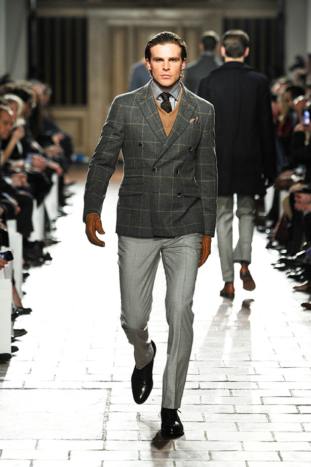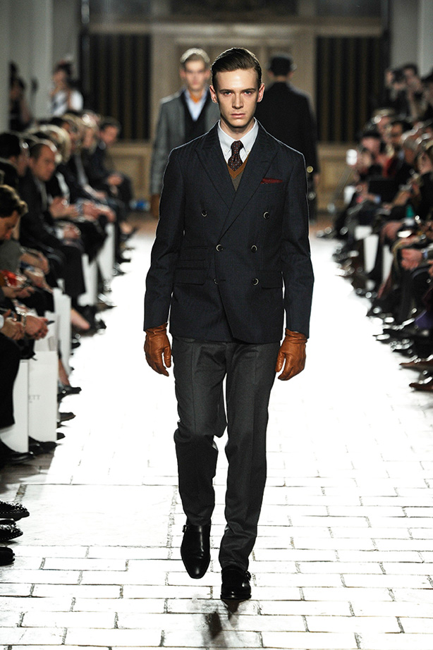 London Fashion week contains Hackett fall/winter 2013 show. The dresses exhibited in the fashion week with various gray-on-gray, orange colour and centerpiece, burgundy colour, varies designs and shapes of different costumes and pants, shirts, sweaters, jerseys with fast and decent colour looking great on the models.