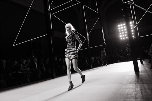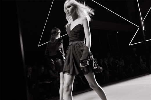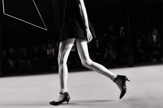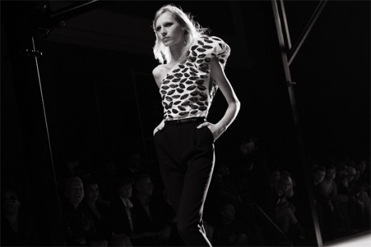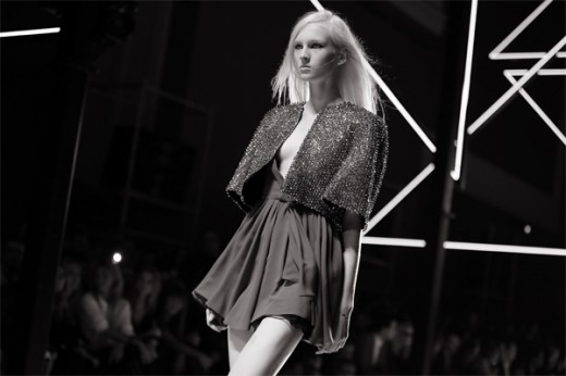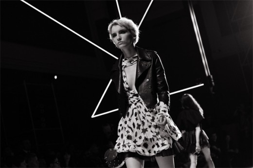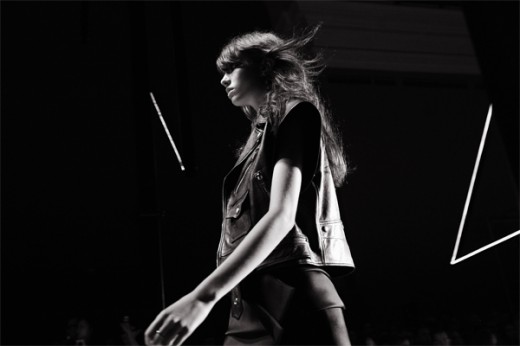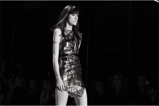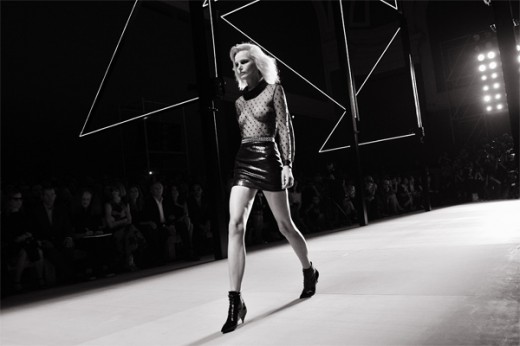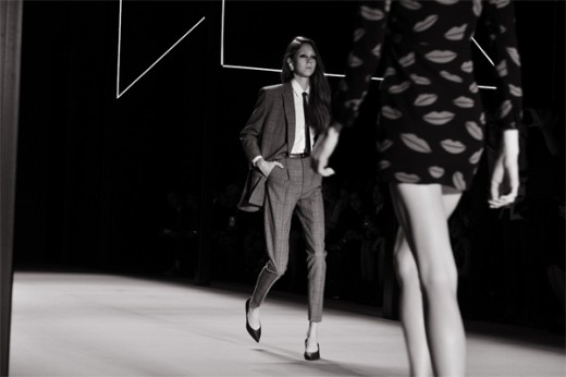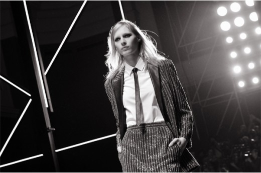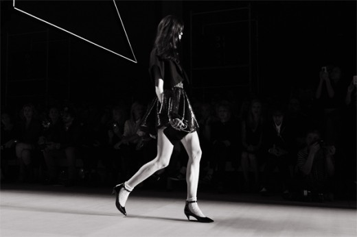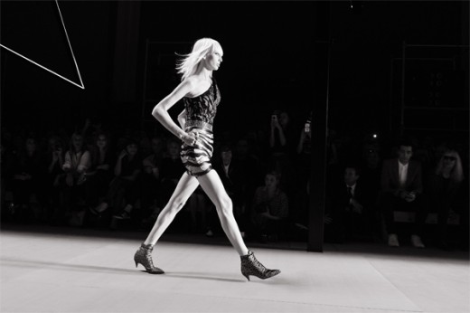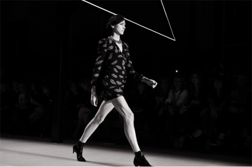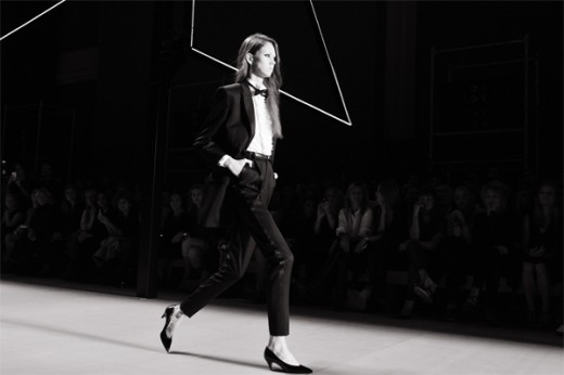 Hedi Silmane’s Saint Laurent has catered to the bad girls, from the moment he took the helm – of course, with bank rolls. Silmane’s spring ’14 show solidified his allegiance to the smoking-in-the-girl’s-room crowd with acres of leather, references to every musical subculture ever and enough black to make a Ramone giddy.